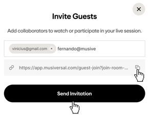You can invite friends and collaborators to your session directly through the platform, in just a few simple steps