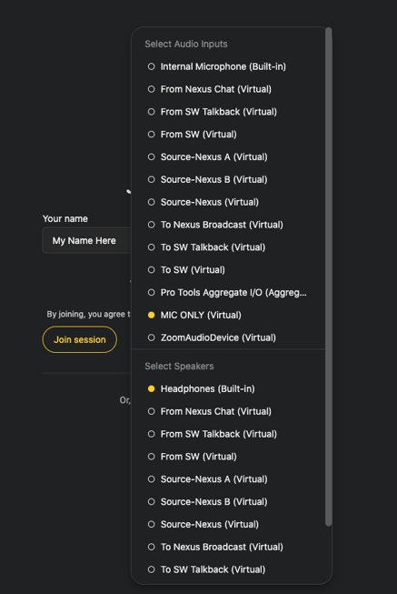 There's a level indicator on the Microphone input, so you can now see if your microphone is working properly before joining the session:
